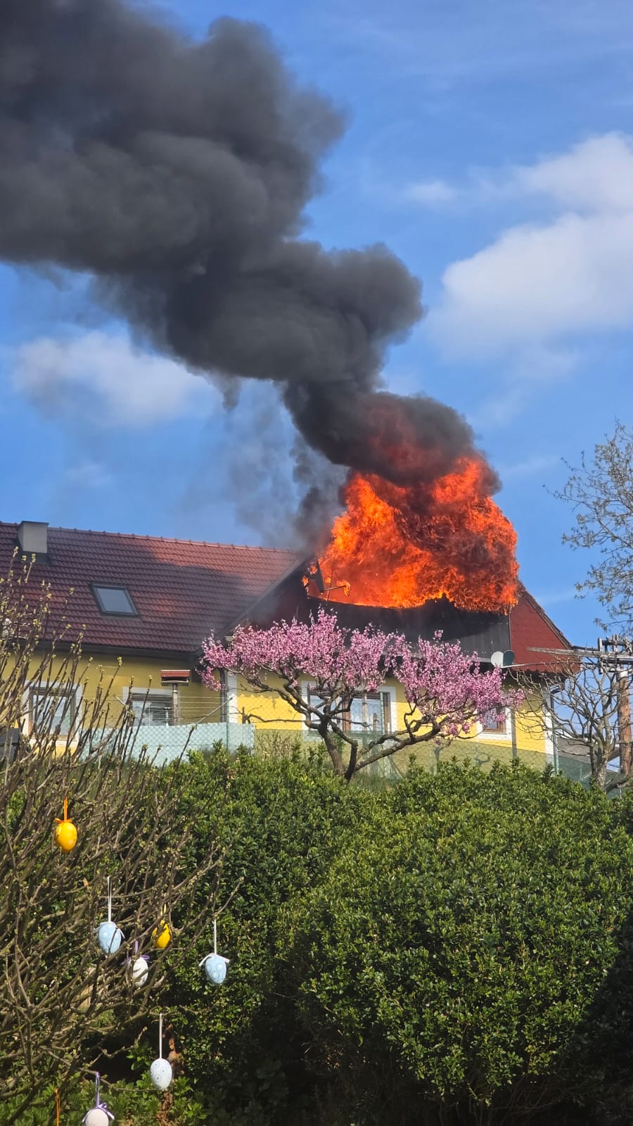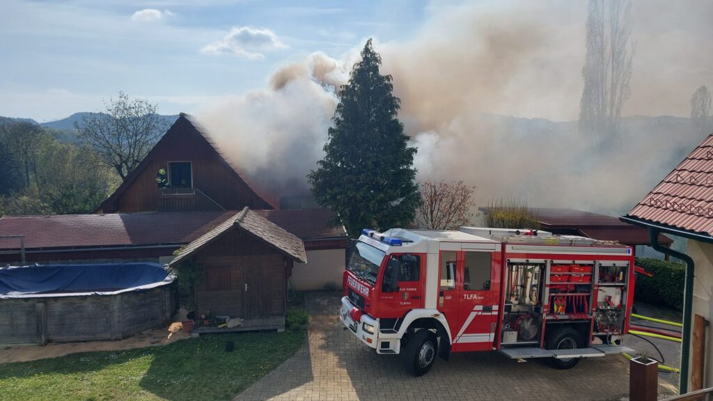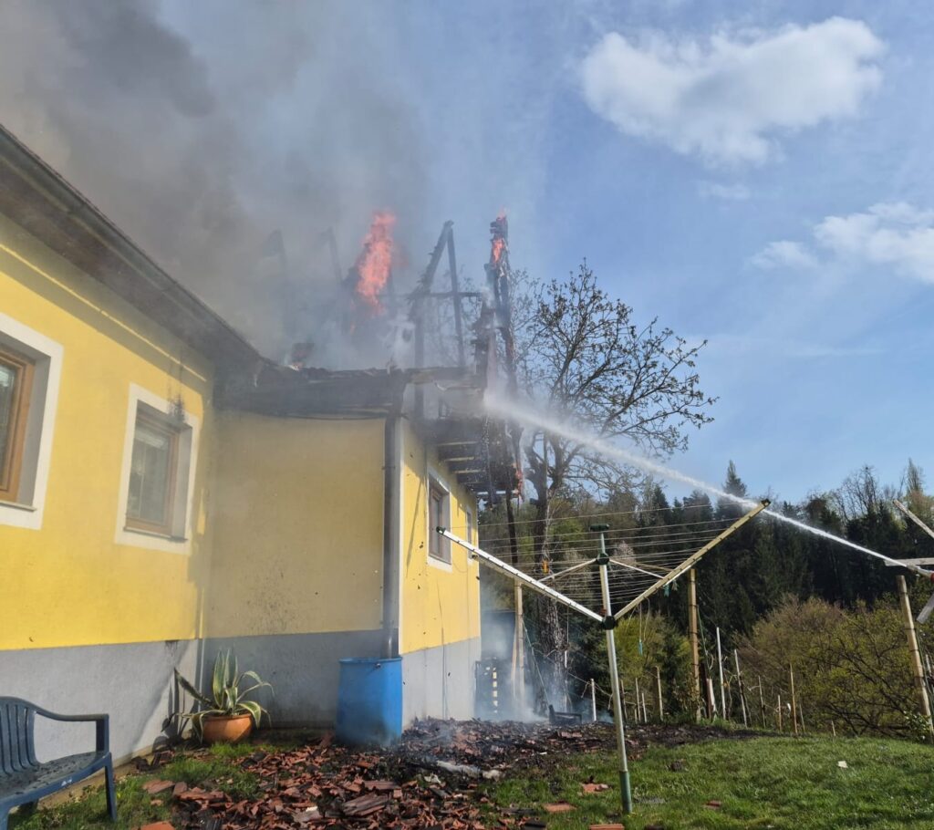 Tillmitsch – Am gestrigen Nachmittag gegen 16:00 Uhr kam es in Tillmitsch zu einem folgenschweren Wohnhausbrand. Aus bislang ungeklärter Ursache geriet der Dachstuhl eines Einfamilienhauses in Brand und wurde dabei vollständig zerstört. Auch das Obergeschoss brannte nahezu vollständig aus.